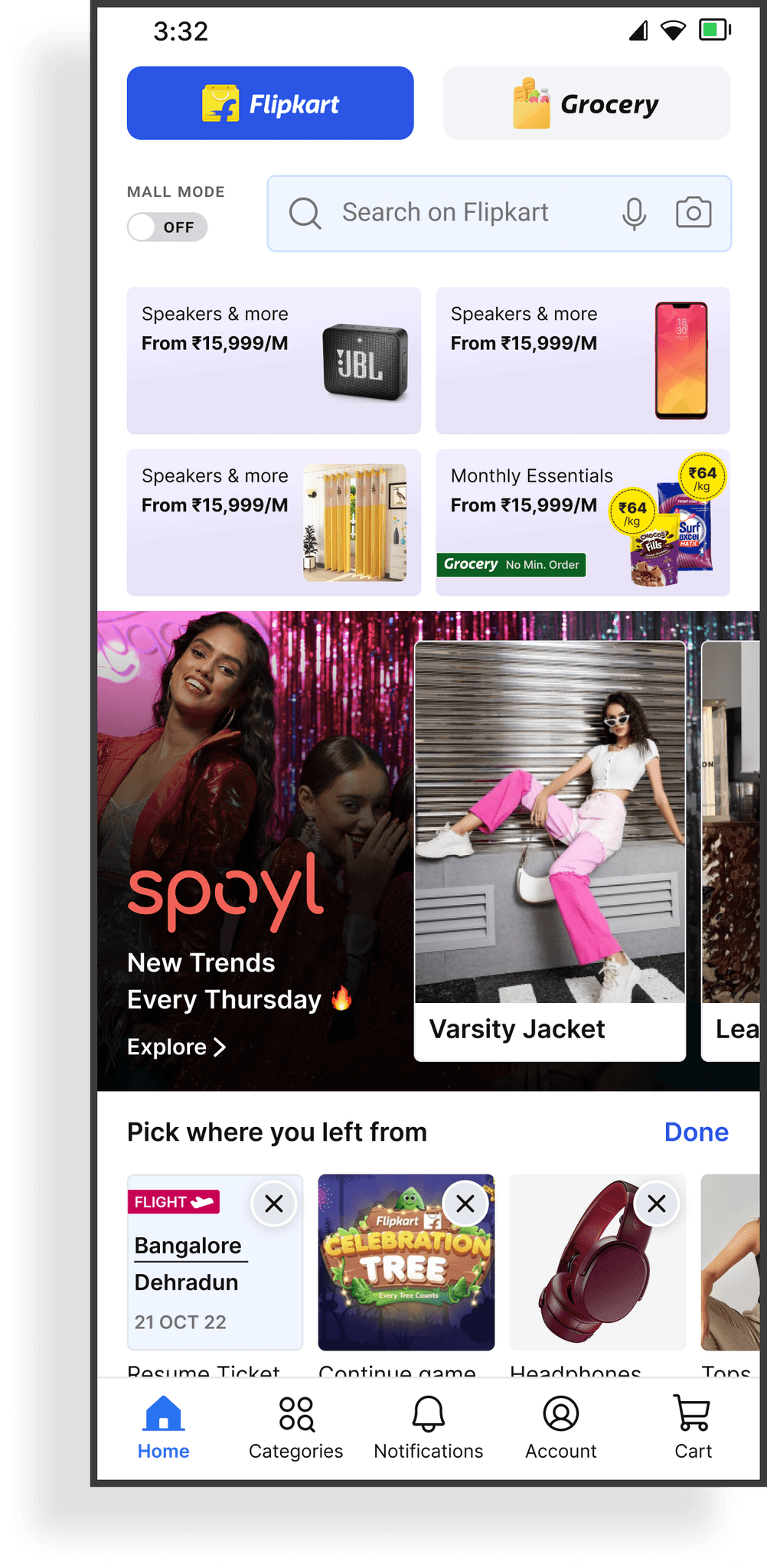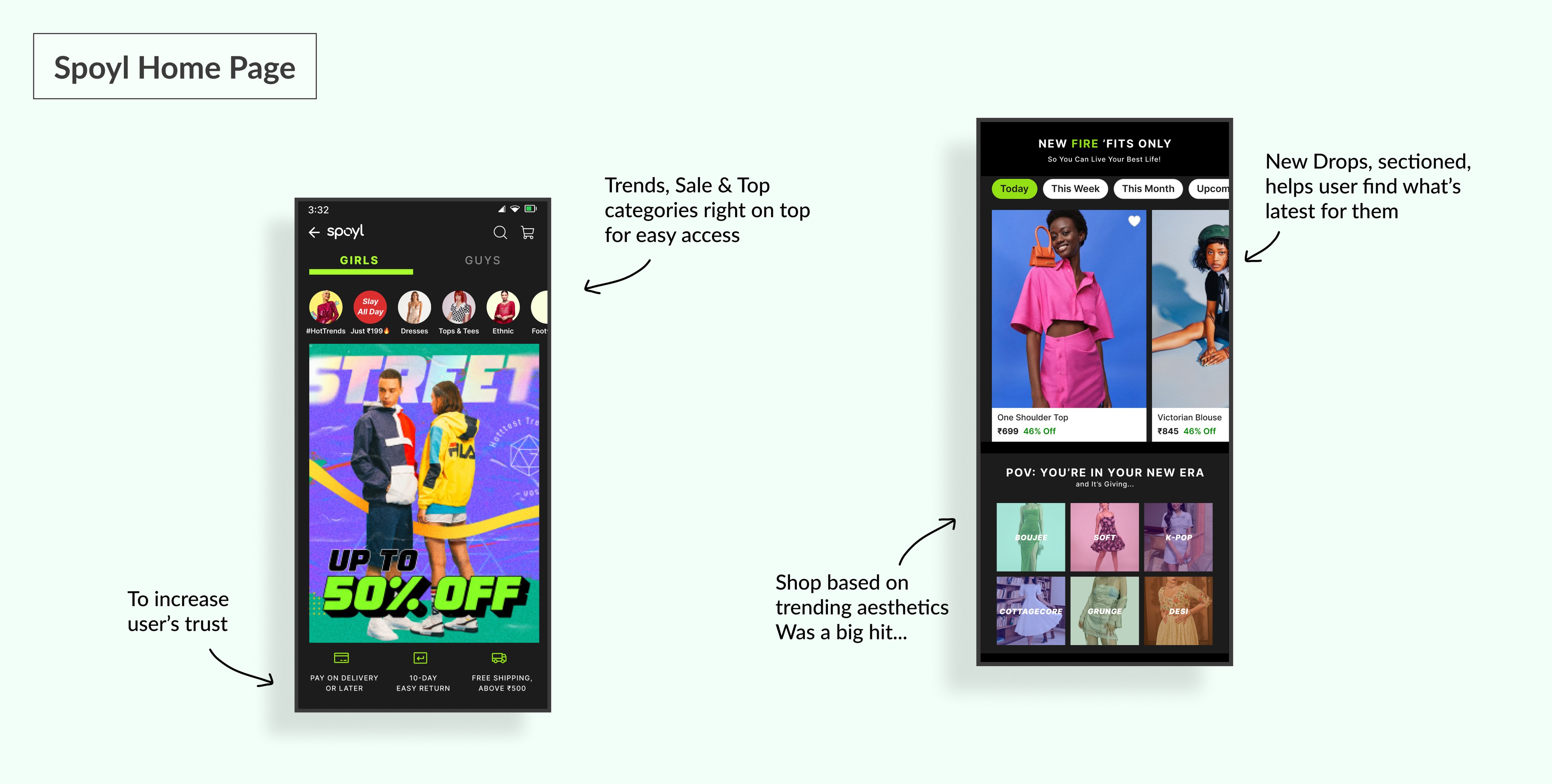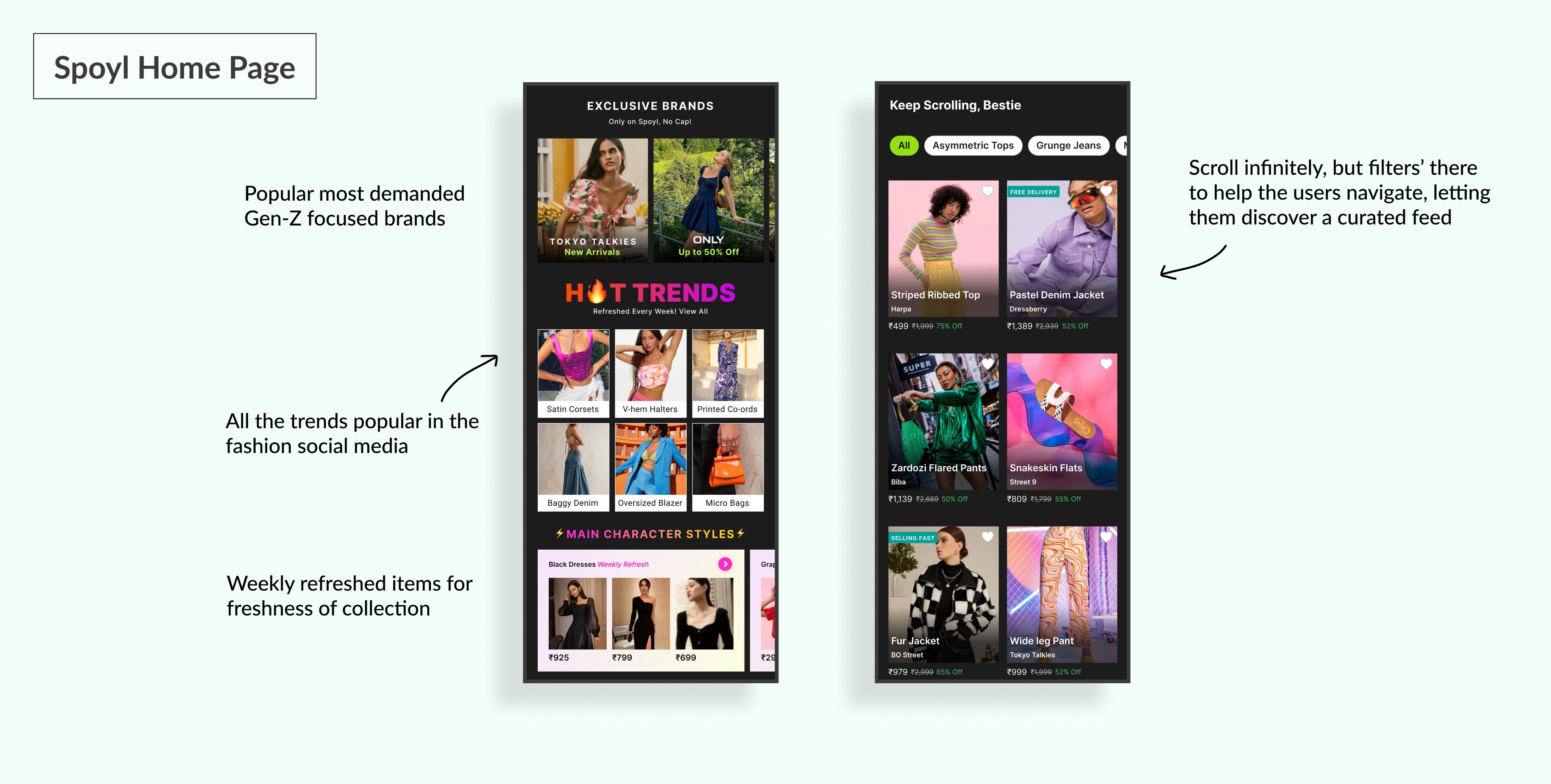Bringing Spoyl to life was a challenge in balancing creative freedom with system constraints. We wanted the design to feel edgy and bold—but had to work within Flipkart’s tech platform.